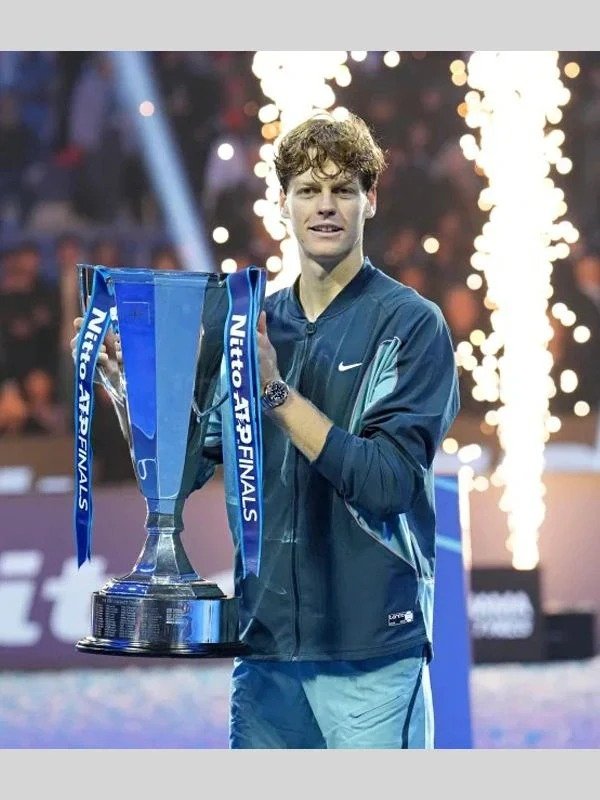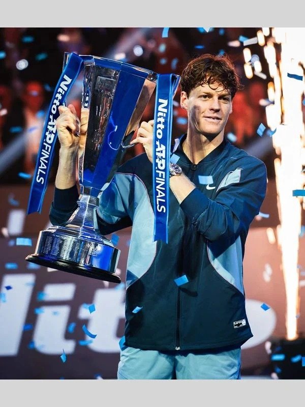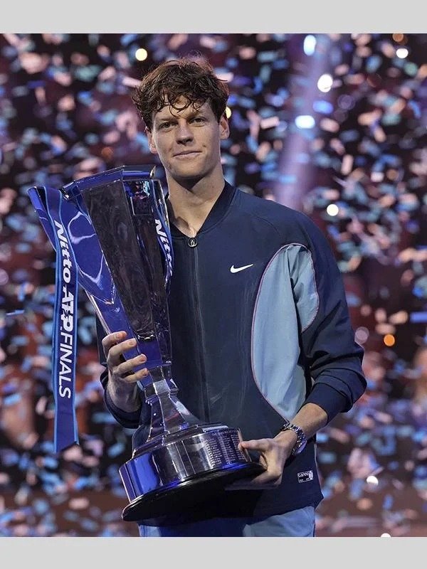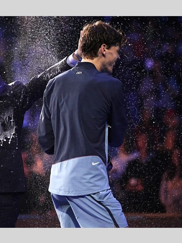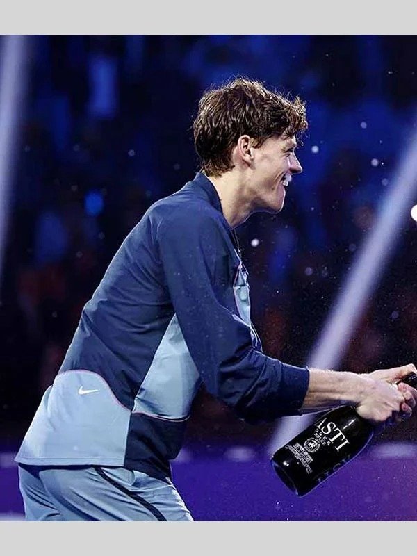 The 2024 ATP Finals Jannik Sinner Jacket from the ATP Finals 2024 is designed for tennis fans and fashionistas alike, offering the ideal balance of comfort and style. Italian tennis star Jannik Sinner won the 2024 ATP Finals wearing a stylish jacket that perfectly blends elegance and athletic flair. The jacket highlighted his victory celebration and prize money. The quality polyester construction of this 2024 ATP Finals Jannik Sinner Jacket ensures durability without sacrificing comfort. The soft lining interior provides an extra layer of comfort, making it perfect for both casual use and on-court performance. Its sporty appeal is further enhanced by the elegant zip fastening at the front, while the ribbed collar adds a touch of vintage charm. In dynamic moments, the sleeves stay in place thanks to the snug fit ensured by the ribbed cuffs. With its eye-catching blue design, this ATP Finals 2024 Jannik Sinner Blue Track Jacket is sure to attract attention wherever it goes. A versatile addition to your wardrobe, the Australian Open 2024 Jannik Sinner Jacket can be worn on the court or off for a relaxed day out. Wear the winning technique of a tennis great with this unique garment.