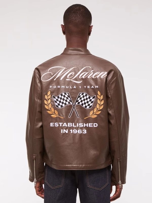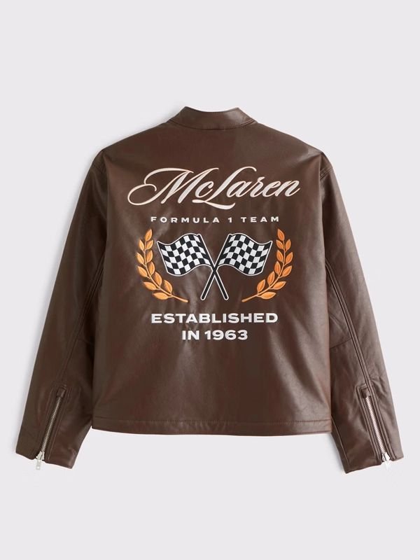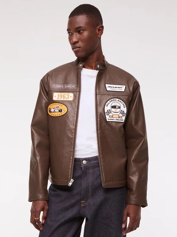 The Abercrombie McLaren Leather Racer Jacket is a stylish combination of everyday style and performance-influenced fashion that will elevate your look. Designed for the contemporary trend-setter, this outerwear piece elegantly embodies the spirit of motorsport. Being made of high-quality faux leather, the Men’s McLaren Vegan Leather Racer Jacket has a bold look without being harmful to animals. The soft inner lining ensures all-day comfort, making it a reliable companion for impromptu trips or informal get-togethers. The front zip fastening ensures a snug and comfortable fit, while the snap-tab collar adds a distinctive racer look. The stiff silhouette is enhanced and the zipped cuffs allow for easy adjustment. Rich brown adds classic appeal and adaptability, teaming with chinos or jeans. The Abercrombie McLaren Leather Racer Jacket combines style and utility in one garment, perfect for dressing up your outfit or going out on a chilly evening. The Men’s McLaren Warm Brown Leather Racing Jacket becomes your go-to piece for bold and confident fashion.