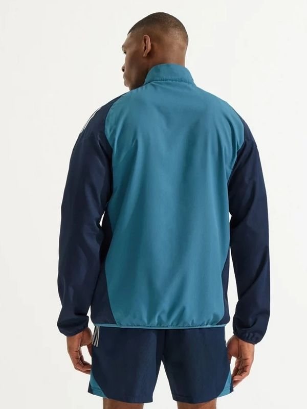 The Arsenal Adidas 25/26 Presentation Jacket is an essential item for any true Gunners fan looking to upgrade their matchday look. Show your support on and off the field is made possible by this jacket that combines quality comfort with sporty elegance. It is made from a high-quality cotton-polyester blend that guarantees a comfortable and durable feel. The stand-up collar gives it a modern look and offers additional protection from the wind. Thanks to the smooth-running zip, you can also wear the jacket on the go and easily pull it over each other. The bold individuality of the jacket is emphasised by its bright blue design. Full-length sleeves and open hem cuffs give the stylish design a crisp, loose fit. With this 2025/26 Arsenal adidas Presentation Jacket, you’ll always be well dressed and represent your team with pride, whether you’re running daily errands or travelling to the Emirates. Enjoy the 25/26 season in true fashion by wearing the Arsenal Teal Presentation Jacket 2025/26 with your official Arsenal apparel. The Arsenal Adidas 25/26 Presentation Jacket ensures your Gunners spirit stands out wherever you go.