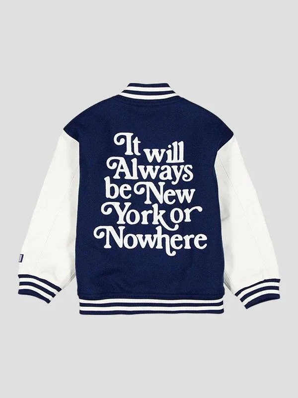The Breanna Stewart Yankees New York or Nowhere Varsity Jacket is a new take on good old America that will elevate your sporty style. Worn by the basketball legend herself, this jacket skilfully blends streetwear style and heritage. Crafted from leather and wool, it promises to be both incredibly stylish and durable. The Yankees’ vibrant blue and white colour scheme perfectly reflects their essence, making it a must-have for fashion lovers and Yankees fans alike. The Breanna Stewart Yankees New York or Nowhere Jacket fastens at the front with a regular button fastening, ensuring a snug yet fashionable fit. The rib knit collar not only enhances overall comfort, but also adds a sporty, vintage look. The sleeves have rib knit cuffs that provide comfort and hold their shape precisely. This Breanna Stewart Yankees New York or Nowhere Varsity Jacket loudly declares: ‘New York or nowhere,’ whether you’re hitting the city streets or heading to the game. It’s a classic layer that combines urban elegance with a sporty spirit.