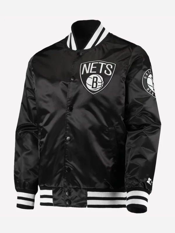 Reproduced – Brooklyn Nets Starter The Diamond Classic Full-Snap Black Satin Varsity Jacket