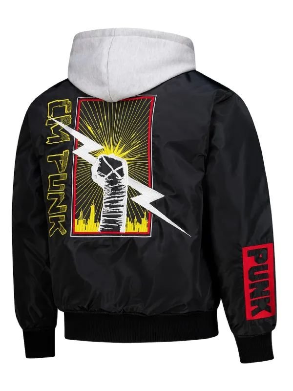 Reproduced – CM Punk Black Hooded Zipper Bomber Jacket