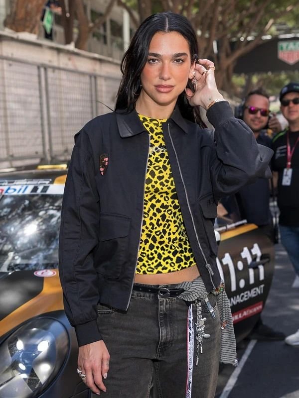 This jacket is a “must-have” for racing and fashion fans alike! Inspired by Porsche, this jacket says it all: speed, luxury, and star power. Whether you call it the F1 Grand Prix Monaco 2025 Dua Lipa Jacket or the Dua Lipa F1 Grand Prix of Monaco Black Jacket, the jacket is priceless. It will have you looking fabulous in the GLOWING and classic look of the F1 Grand Prix Monaco Dua Lipa Porsche Jacket.