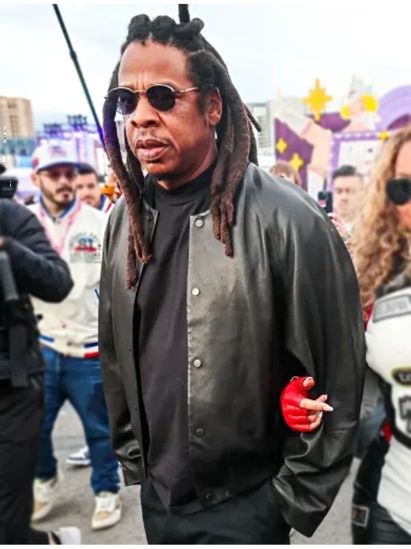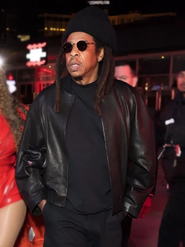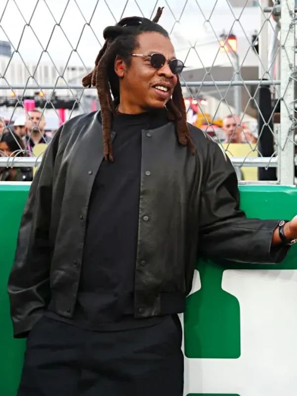 Reproduced – Jay-Z F1 Grand Prix Of Las Vegas Black Collarless Bomber Leather Jacket