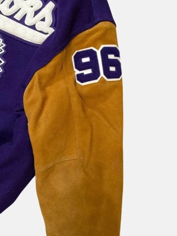 Show your school spirit in a big way with the Kahoks Letterman Jacket, a timeless piece of outerwear that combines comfort and tradition. With its eye-catching purple and brown colour design, this jacket stands out in a crowd. The combination of suede leather and wool guarantees longevity and a sophisticated touch, making it ideal for chilly school days or game nights. The Viscose Quilted Lining on the inside provides warmth and a smooth texture, making it the perfect choice for year-round wear. The rounded rib-knit collar keeps the neck warm while adding a sporty touch. The buttoned closure guarantees a snug and vintage look, whether you’re strolling the hallways or applauding from the stands. More than just a garment, the 1996 Collinsville High School Kahoks Letterman Jacket is a representation of school spirit, dedication and tradition thanks to its classic style and distinctive design. An essential item for everyone who wants to represent with pride, including supporters, alumni, and students. The Kahoks Letterman Jacket truly embodies the legacy and pride of generations.