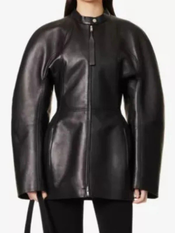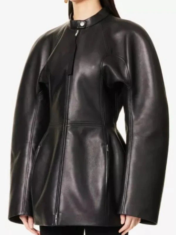 Inspired By Katy Perry Oversized Black Real Leather Jacket Coat