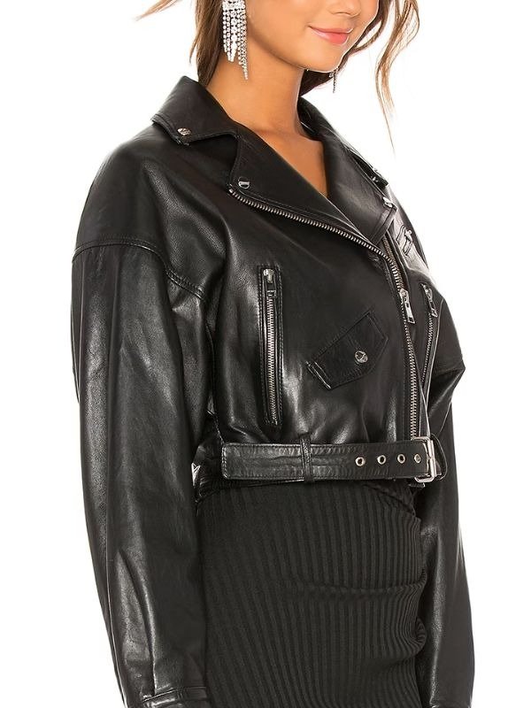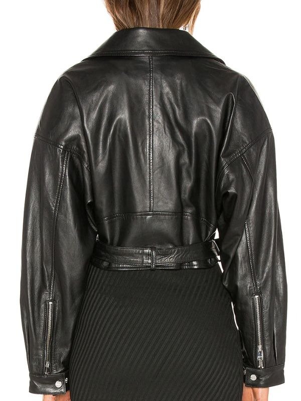 Inspired By Leonie Hanne Short Body Oversized Biker Black Leather Jacket