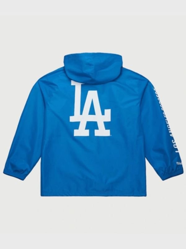 True baseball enthusiasts should buy the Los Angeles Dodgers Coaches Hooded Windbreaker Jacket to enhance their sportswear. This elegant jacket is made of high quality parachute material and is designed to protect you from wind and light rain when you are outdoors. Its most noticeable feature is the adjustable and comfortable hooded collar, which adds protection and a stylish look. Lightness and style are emphasised by the traditional button fastening. Thanks to its loose fit, this windbreaker is ideal for wearing over casual streetwear or your play ensemble. The elasticated cuffs ensure a secure fit, keeping you warm and comfortable during the changing weather. These garments proudly showcase your team spirit while providing utility with their bright Blue Dodgers Coaches Hooded Windbreaker Jacket design. Whether you’re on the street or in the stadium, this Los Angeles Dodgers Coaches Hooded Windbreaker Jacket strikes the perfect balance of modern design and sporty vibrancy. Elevate your style with this trendy hooded jacket and upgrade your wardrobe effortlessly. Enjoy free shipping and grab our limited-time discount offer now—don’t miss out on this deal!