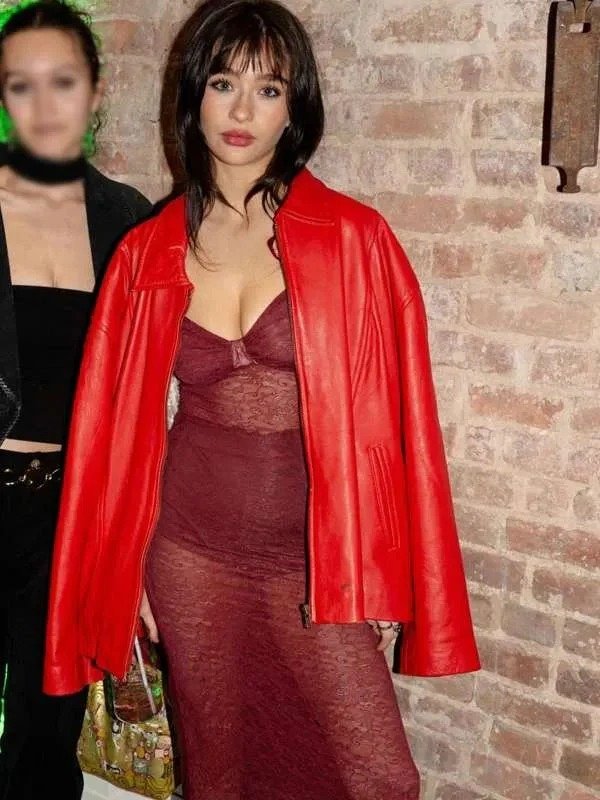 The Malina Weissman Masters of the Air Red Leather Jacket is a striking and fashionable item made of high-quality genuine leather. Malina Weissman, an American actress and model, wears a striking red leather jacket in Masters of the Air, sporting a bold and stylish look that perfectly complements her character’s adventurous spirit. You can wear it comfortably all day long thanks to the viscose lining. With its shirt collar and elegant zip fastening at the front, this Malina Weissman Masters of the Air Red Leather Jacket has a contemporary air. It stands out in any context because of the lively touch offered by its bold shade of red. The jacket’s two front pockets and inner pocket offer ample space to store your necessities. With its full-length sleeves, it fits perfectly and provides warmth in colder climates. For anyone who wants to be comfortable and stylish while making a fashion statement, this jacket is the perfect option. Whether you’re dressing up for a casual day out or looking to elevate your evening look, the Malina Weissman Oversized Leather Jacket offers both comfort and versatility. For those who appreciate craftsmanship and modern style, the Masters Of The Air 2024 Malina Weissman Red Leather Jacket is a must-have garment, ideal for informal get-togethers or for adding a touch of class to your outfit.