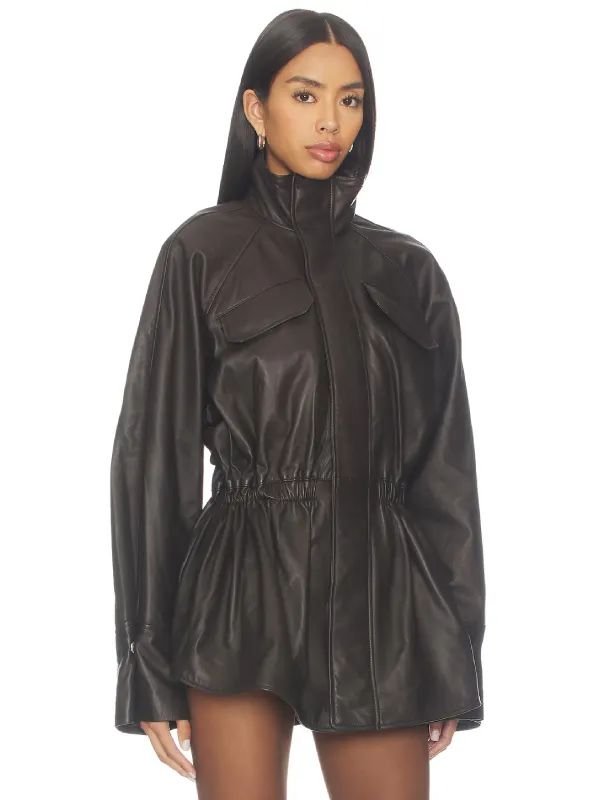Women’s Mendoza Oversized Brown Leather Jacket