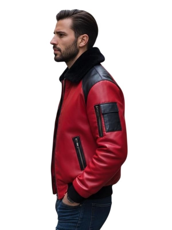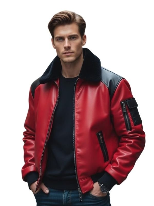 Men’s Aviator Red and Black Leather Bomber Jacket