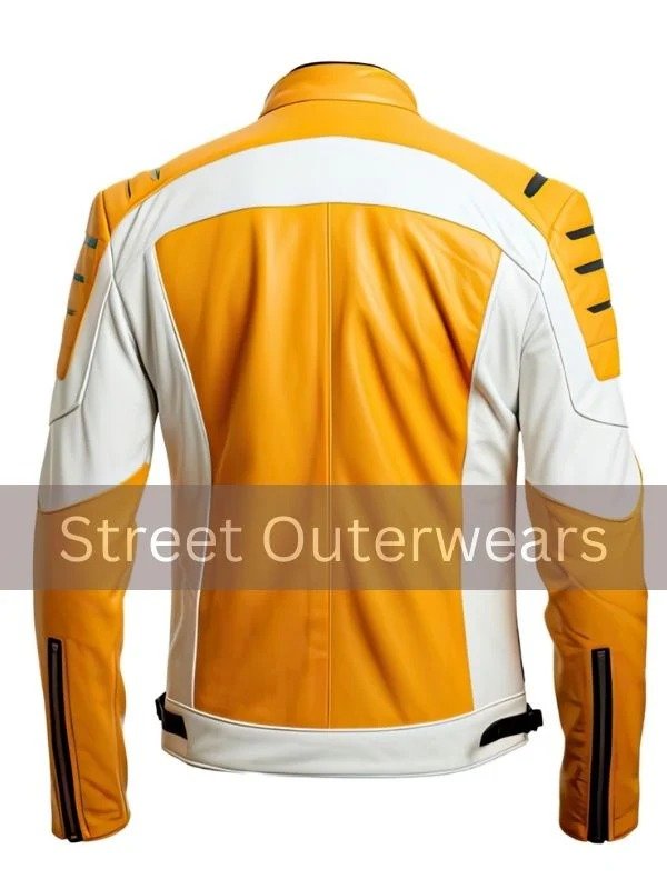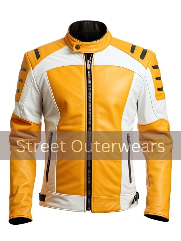Looking for a way to elevate your style effortlessly? Look no further than this Mens White and Yellow Smooth Classy Leather Jacket. With its sleek design and impeccable craftsmanship, this jacket is sure to become a staple in your wardrobe. The Men’s White Yellow Leather Jacket Genuine Sheepskin lining ensures maximum comfort, while the stand collar adds a touch of confidence to your look. Whether you’re hitting the streets or attending a social gathering, this jacket is guaranteed to turn heads. Don’t miss out on the opportunity to make a statement with this Mens White and Yellow Smooth Classy Leather Jacket. The full sleeves are timeless and elegant at the same time. Make the most of them. This jacket effortlessly combines utility and style thanks to its two waist pockets. This jacket promises a sumptuous feel with every wear.