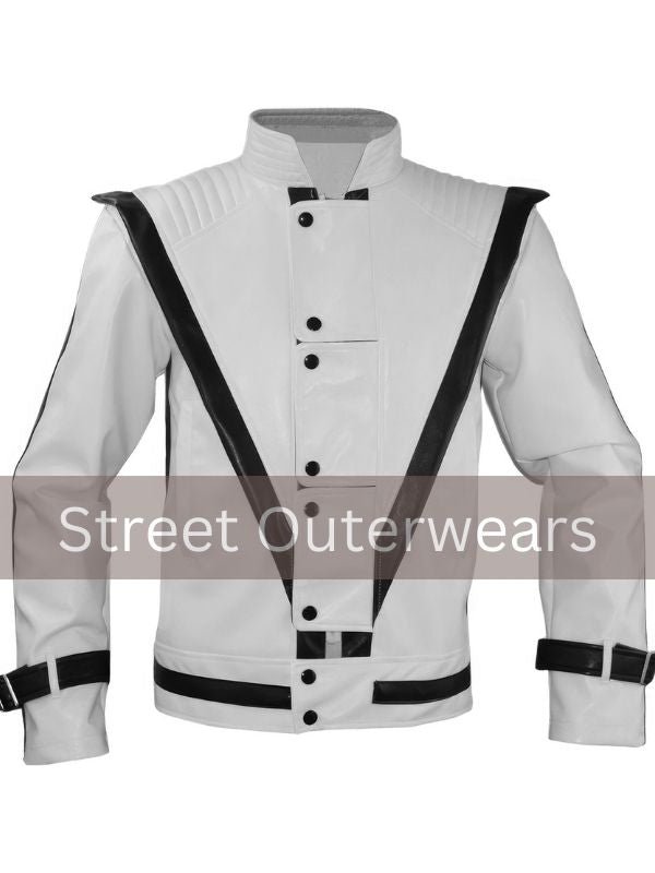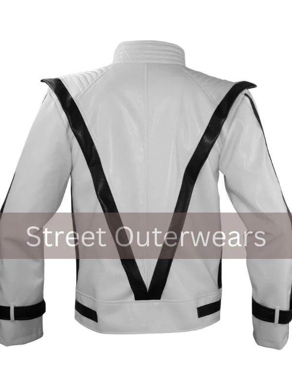 Mens White Quilted Shoulders Black Strips Cosplay Leather Jacket
