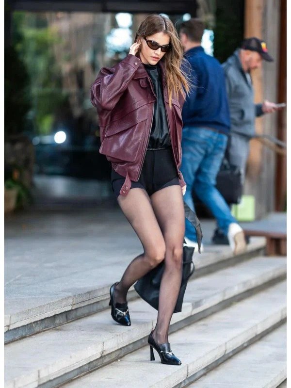 A fashionable and trendy item of clothing, the New York Barbara Palvin Burgundy Leather Jacket from New York is ideal for creating a fashion statement. In New York, Barbara Palvin was spotted wearing a chic burgundy leather jacket. The stylish jacket gave a hint of edgy sophistication and went well with her look. This jacket is made of genuine leather and is elegantly and durably constructed. It stands out in any situation thanks to its burgundy hue, which gives it a rich and opulent look. The jacket has a soft viscose lining for added comfort, making it snug and smooth against the skin. The front zip fastening makes it easy to wear, while the shirt collar gives the design a timeless touch. The full-length sleeves with zipped cuffs give the jacket a refined look that goes well with a variety of outfits. This Barbara Palvin New York Vintage Burgundy Leather Jacket is a great addition to any wardrobe because it perfectly combines comfort and style, whether you’re dressing for a night out or looking for a stylish garment for everyday wear. The New York Barbara Palvin Burgundy Leather Jacket is the perfect balance of fashion and function.