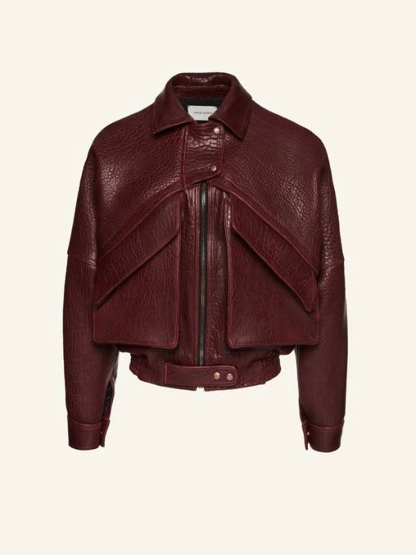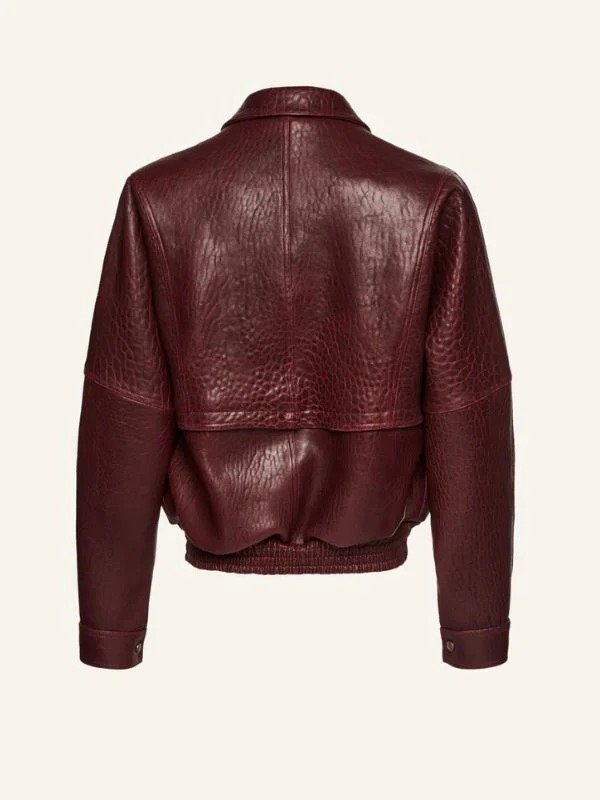 Inspired By Barbara Palvin New York Vintage Burgundy Leather Bomber Jacket