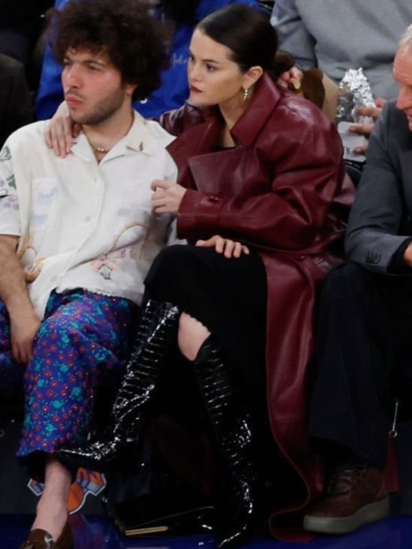 At the Knicks Game Selena Gomez Maroon Leather Coat stunned the crowd, effortlessly blending urban flair with celebrity style. The Selena Gomez Knicks Game Maroon Coat exuded elegance and sophistication, making her stand out in the bustling arena. Whether courtside or in the stands, Selena’s impeccable fashion sense shone through, proving that her style knows no bounds.