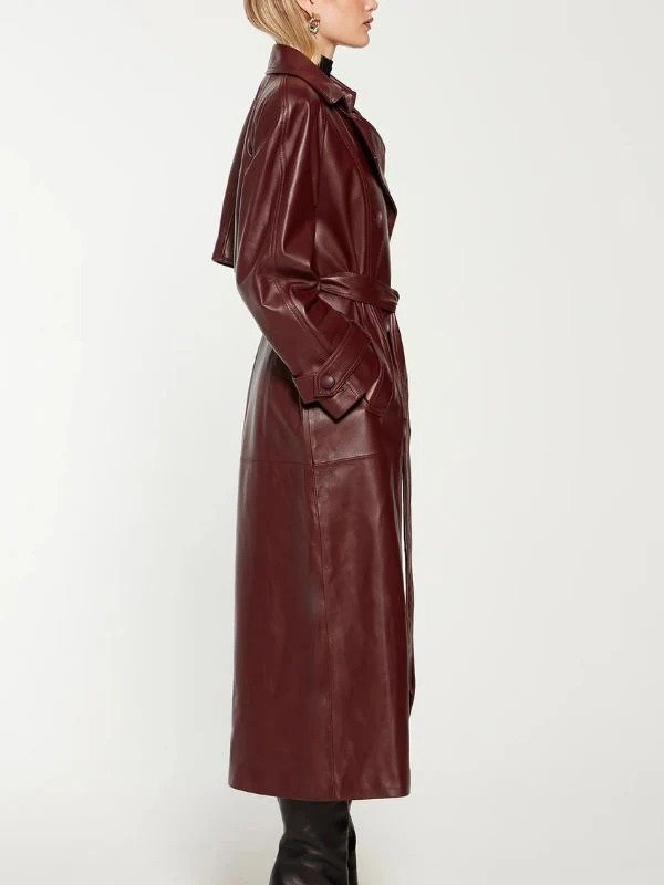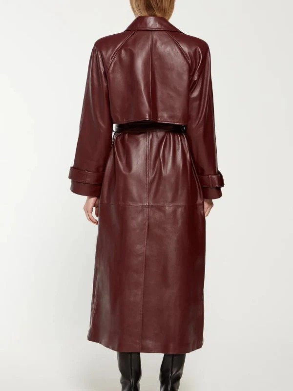 Knicks Game New York City Inspired By Selena Gomez Maroon Leather Long Trench Coat
