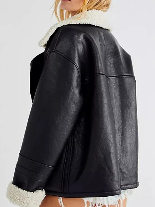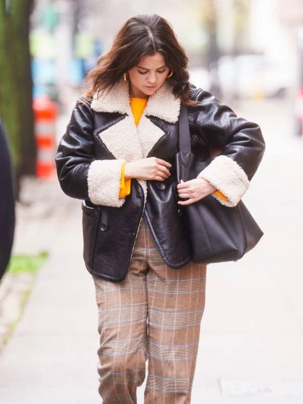 New York Inspired By Selena Gomez Shearling Black Real Leather Jacket