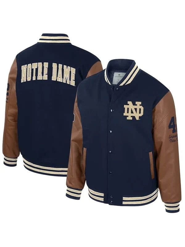 The button closure provides one with the security of a perfect fit and at the same time, it enables one to layer the jackets over shirts and hoodies easily, so it can be worn in all kinds of weather. This Notre Dame Letterman Jacket outerwear item is made up of attention to detail and it is the perfect combination of function and style thus giving the wearer confidence whether on campus or out for a casual day. The overall style is a reflection of the tradition of a real Notre Dame Letterman Varsity Jacket but with comfort that meets the demands of the modern world.