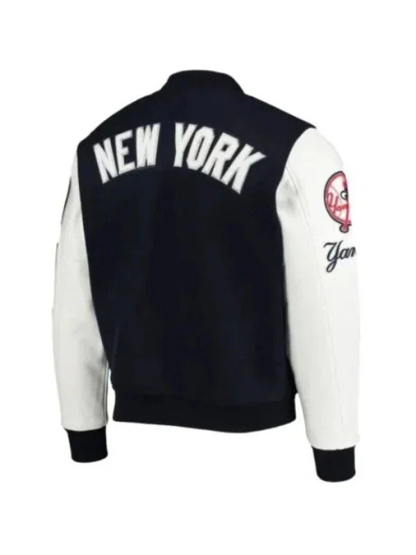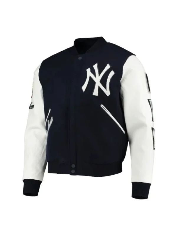 NY Yankees Logo Navy Blue and White Varsity Jacket