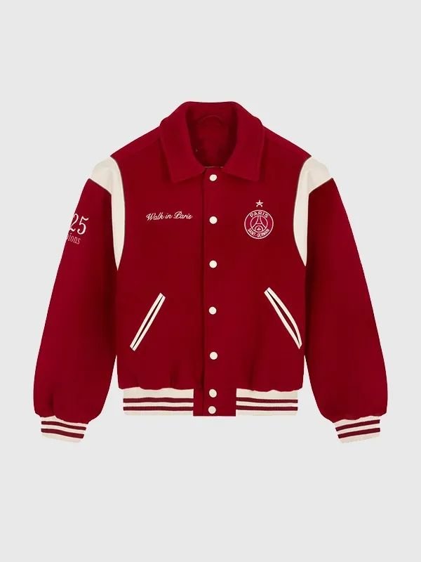 Reproduced – Paris Saint-Germain Walk in Paris 2026 Red Wool Varsity Jacket
