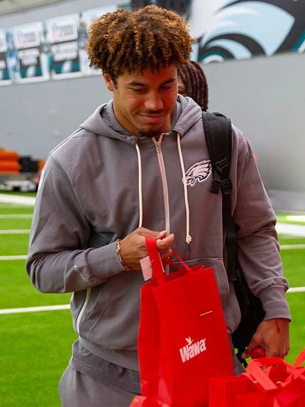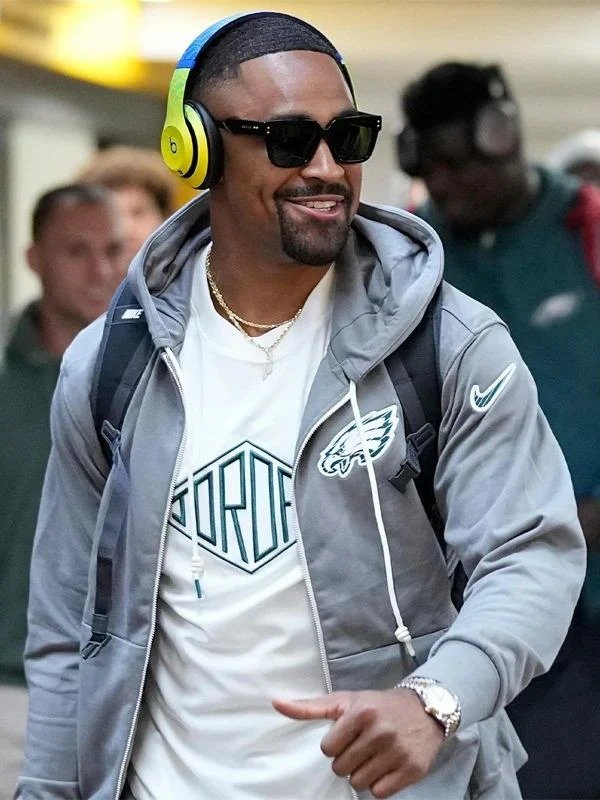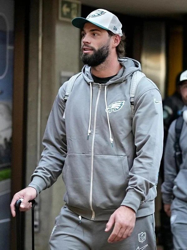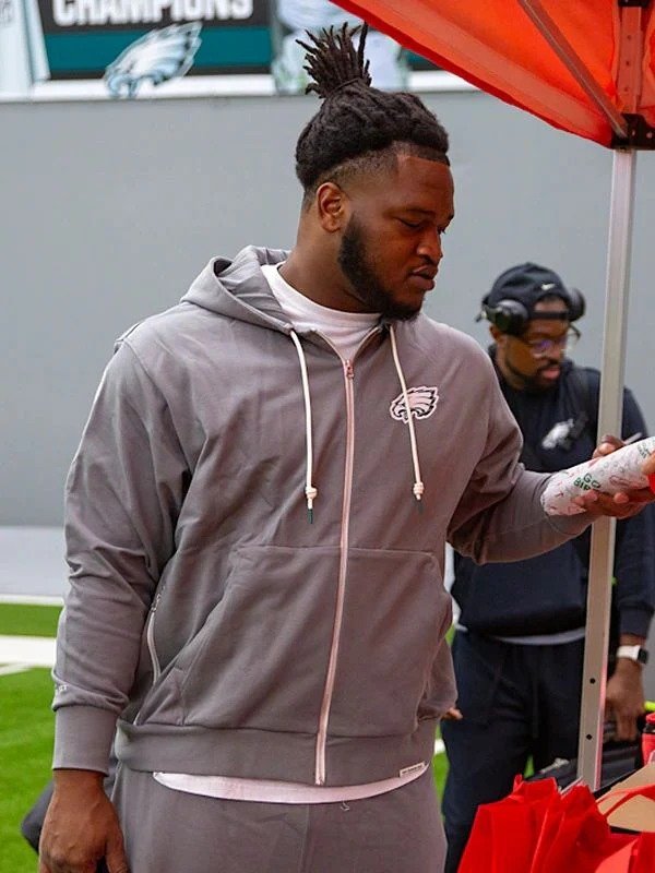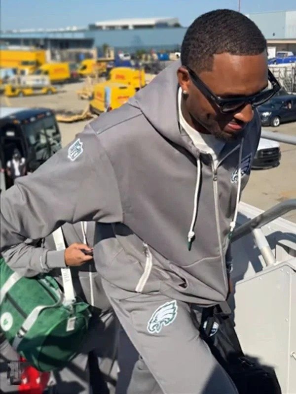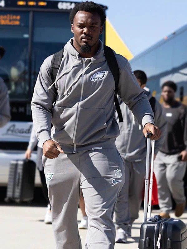 An excellent option for any Eagles fan, the Philadelphia Eagles Grey Tracksuit combines athletic flair with club spirit. which makes it suitable for fans and athletes as well. This Philadelphia Eagles Grey Tracksuit is made from premium polyester and is designed to be comfortable and durable, so you can stay comfortable when supporting your team or moving around. Wearing the jacket is easy thanks to the practical zip fastening, while the ribbed collar gives it a timeless look. Ribbed sleeve cuffs ensure a snug fit and keep you warm. The matching trousers complete the look with two side pockets for convenient storage. In addition to comfort, the sleek and contemporary grey design of this Team Eagles Sideline Gray Tracksuit makes it ideal for training sessions or casual get-togethers. The Philadelphia Eagles Jalen Hurts Super Bowl LVII Grey Tracksuit crest is prominently displayed on this tracksuit, giving fans a useful and fashionable way to show their team spirit. Enjoy free shipping and a discount on your purchase! Elevate your style with this superior jacket, made for comfort and sophistication. Don’t miss out, buy now to enhance your look!
