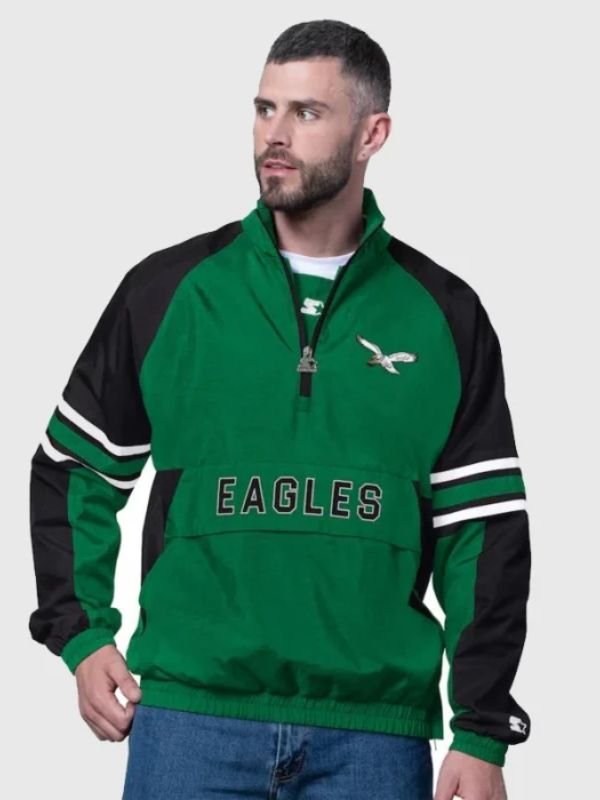Reproduced – Men’s Philadelphia Eagles Kelly Green Vintage Logo Prospect Half-Zip Jacket