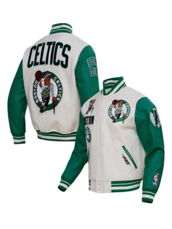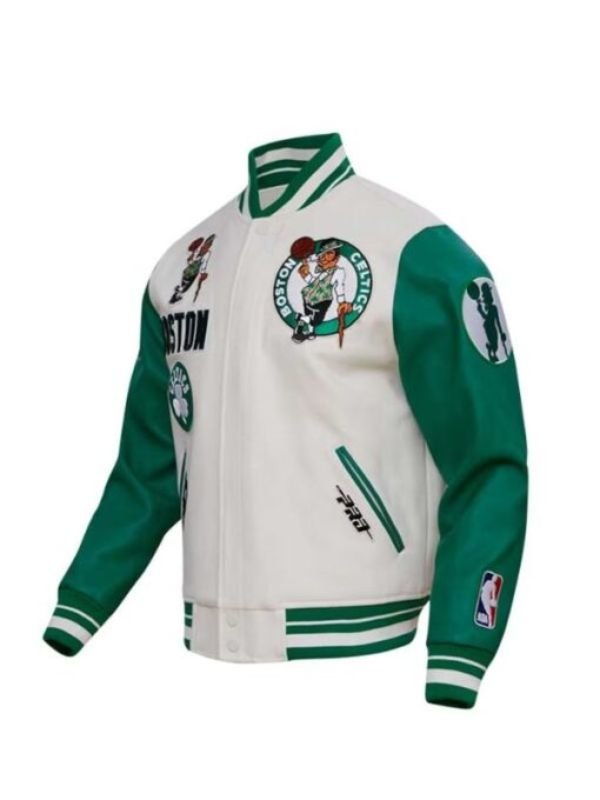 Introducing the Pro Standard Cream Boston Celtics Retro Jacket, a timeless piece that seamlessly blends comfort and style. Crafted with expertise, this jacket boasts a viscose inner lining that offers unparalleled warmth and cosiness. Pro Standard NBA Boston Celtics Retro Classic Varsity Jacket Its YKK zip ensures both durability and an elegant appearance, while the ribbed collar adds a touch of classic sophistication. Nostalgia meets fashion with its long sleeves and ribbed knitted cuffs, combining style with practicality. Pro Standard Cream Boston Celtics Retro Jacket But this jacket isn’t just about looks – it’s highly functional too, featuring two side pockets and two inside pockets to easily carry all your essentials wherever you go. Elevate your wardrobe with the Boston Celtics Pro Standard Retro Classic Cream Jacket, a versatile addition that exudes both charm and utility.