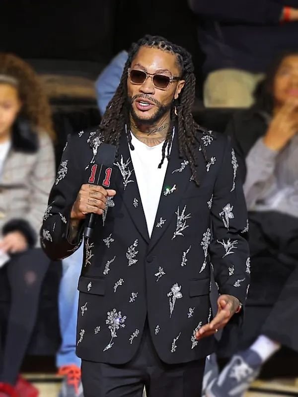 Reproduced – Jersey Retirement Ceremony 2026 Derrick Rose Black Embroidered Blazer