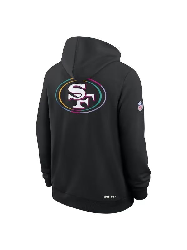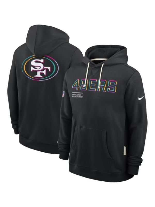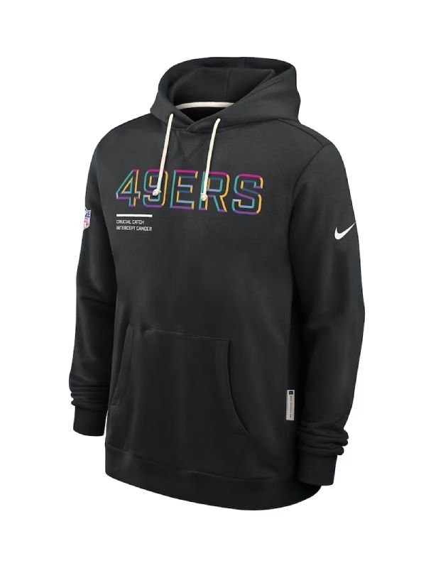 Support the fight against cancer while showing off your favorite team with the San Francisco 49ers 2025 Crucial Catch Hoodie. This hoodie was created for a purpose and to offer comfort. Made of a quality knitted fabric, this hoodie has a cozy, yet breathable, feel, making it an essential layering piece on gamedays, for training sessions, or even just around the house. The black color adds a twist to the hoodie by increasing the versatility, while the team’s bold logo makes it a great item for an authentic 49ers fan.