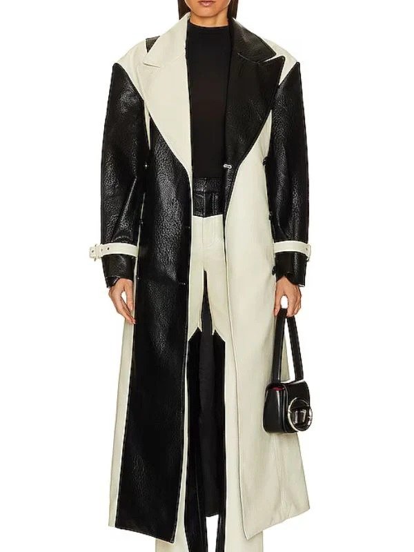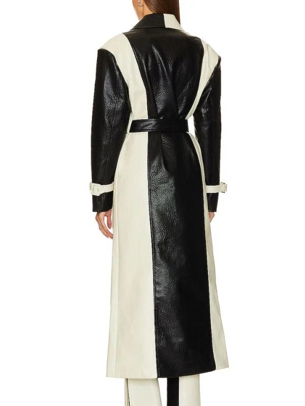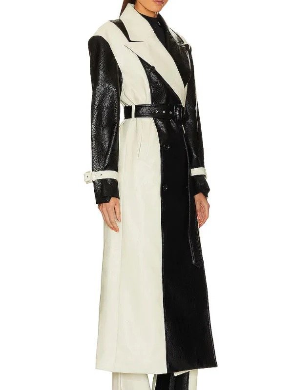 Inspired By Selena Gomez Color Blocked Black And White Real Leather Trench Coat