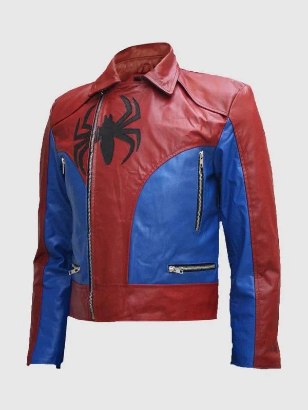Bring out the superhero in you with the eye-catching Spider Red and Blue Leather Jacket, an impressive garment inspired by classic comic book designs. This jacket, made of genuine leather, has a stylish and robust design, ideal for fashionistas. The eye-catching combination of red and blue creates a striking contrast that immediately catches the eye. Designed with attitude and comfort in mind, it features an elegant zip fastening that gives the entire silhouette a contemporary touch. The shirt collar, which combines a classic design with a modern twist, adds a classic touch. The zipped cuffs and full-length sleeves offer a secure and adjustable fit, ensuring you stay stylish and confident wherever you go. It’s the perfect jacket for going to a comic book convention or for adding a more heroic touch to your outfit. Use this striking piece of clothing to boost your style and embody your favourite web-slinging superhero. Whether you’re into classic superhero fashion or want a bold biker look, this Spiderman Style Mens Biker Jacket makes the ideal statement. For fans seeking authenticity, the Spidermen Red & Blue Mens Biker Leather Jacket delivers exactly that—style, durability, and heroic flair in one package. Embrace your inner hero with this outstanding Spider Red and Blue Leather Jacket.