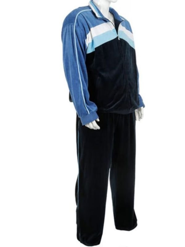 The pants are made of the same rich velvet fabric and have a beautiful matching blue color; therefore, they complete the iconic Sopranos tracksuit look. This extremely comfortable and relaxed outfit is perfect for anyone who appreciates the audacious appearance and enduring style of Tony Soprano on television.