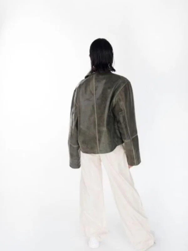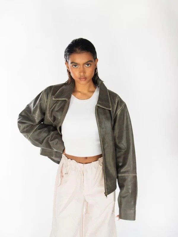 With this Womens 90s Distressed Boxy Leather Jacket, which combines a contemporary edge with vintage charm, you can transport yourself back to the 1990s. The Mabel Distressed Boxy Leather Jacket is made from high-quality leather and features distressed accents for a rugged look. While the zip ensures comfort, the shirt-style collar gives it a timeless look. The luxurious viscose lining invites you to relax. This distressed leather jacket is so adaptable that it can be worn with anything and instantly increase your appeal. This Womens 90s Distressed Boxy Leather Jacket is an item that always exudes confidence and personality, whether worn with jeans for a relaxed feel or layered over a dress for a stylish look. Wear this famous jacket and make a statement at any occasion.