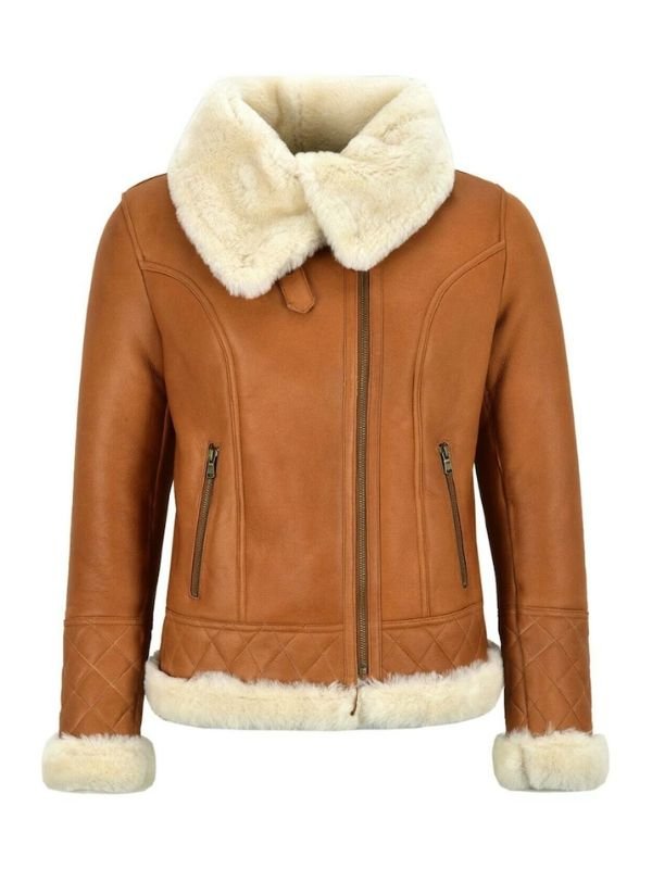The epitome of classic style and practicality – the Womens B3 RAF Aviator Shearling Bomber Jacket. Crafted to perfection, this luxurious jacket boasts a sumptuous shearling lining, delivering unparalleled warmth and comfort. Whether you’re braving the cold or aiming to make a sophisticated statement, this jacket effortlessly combines elegance with functionality. With its timeless shirt collar and snug zip fastening, it’s a must-have for any winter wardrobe. Defying trends and seasons, it captures the essence of aviation-inspired fashion, adding a touch of sophistication to any ensemble. Donning the Womens B3 RAF Aviator Shearling Bomber Jacket ensures you not only stay cozy but also exude timeless style. And for those seeking a slightly different hue, explore the Women’s Tan Brown Bomber Real Sheepskin Jacket – another exquisite choice for the fashion-forward individual.