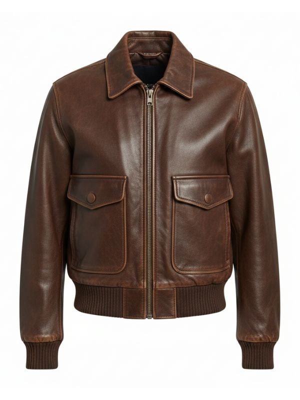 Womens Classic Vintage Brown Genuine Leather Bomber Jacket