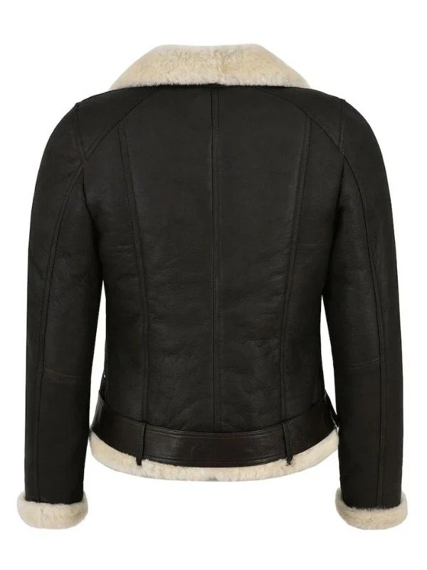 The Womens lambskin Chestnut B3 Aviator Black Biker Jacket, a true testament to both fashion and warmth. Crafted from high-quality lambskin leather, this jacket is not only elegant but also built to last. The soft sheepskin lining ensures unparalleled comfort, particularly in colder climates. With its traditional turn-down collar and lapels, this jacket adds an element of sophistication to any outfit. The Womens Chestnut Aviator Shearling Jacket is further accentuated by a convenient zip fastener, providing both ease of use and safety. Whether you’re venturing out or embarking on an adventure, this jacket proves to be the perfect travel companion, seamlessly blending style and practicality. Versatile in nature, it effortlessly injects a pop of color into any ensemble. This women’s genuine leather fur shearling biker jacket is a must-have addition to any wardrobe, offering both style and substance. So why wait? Elevate your outerwear game with the timeless charm of the Womens lambskin Chestnut B3 Aviator Black Biker Jacket.