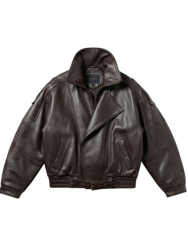 Womens Midnight Mocha Oversized Brown Leather Bomber Jacket